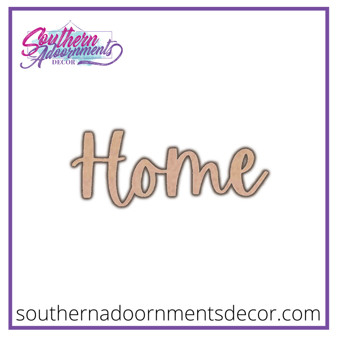 This Unfinished Word "Home" Cutout is a 1-piece design in the 'Apricot' font. This modern handwritten typeface is perfect for adding a personal touch to any project.