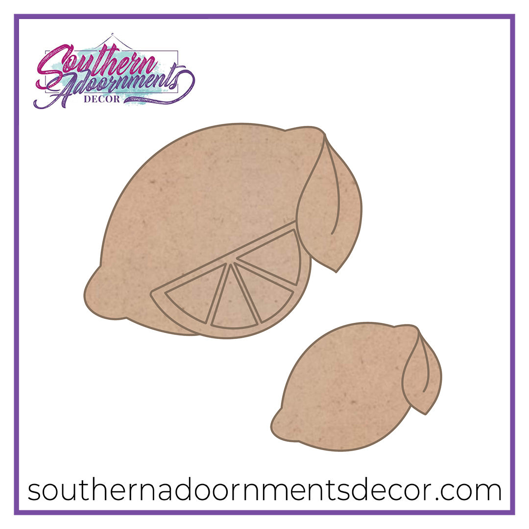This set features two designs: One large lemon with wedge and one small lemon.